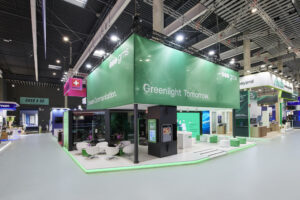 SEO Focus: Custom B2B stands MWC, GMS Barcelona presence, professional booth construction.